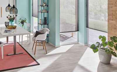 De vrijhangende geplooide Type B-gordijnen van Silent Gliss hebben een zijgeleider en zijn ideaal voor rechthoekige of uniek gevormde ramen, inclusief kiep- en draaikiepramen tot een hoek van maximaal 15°. Het Type B-model is leverbaar met een doorlopende ketting voor openen en sluiten.